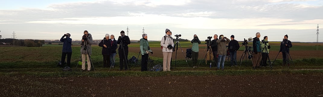 Die Anhöhe nördlich von Masenhausen bietet eine gute Möglichkeit, Zugvögel zu beobachten. Am Morgen des 16.10. waren die Voraussetzungen besonders günstig: gute Flugbedingungen für die Vögel, gute Sicht für die 20 Beobachter und günstige Temperaturen.