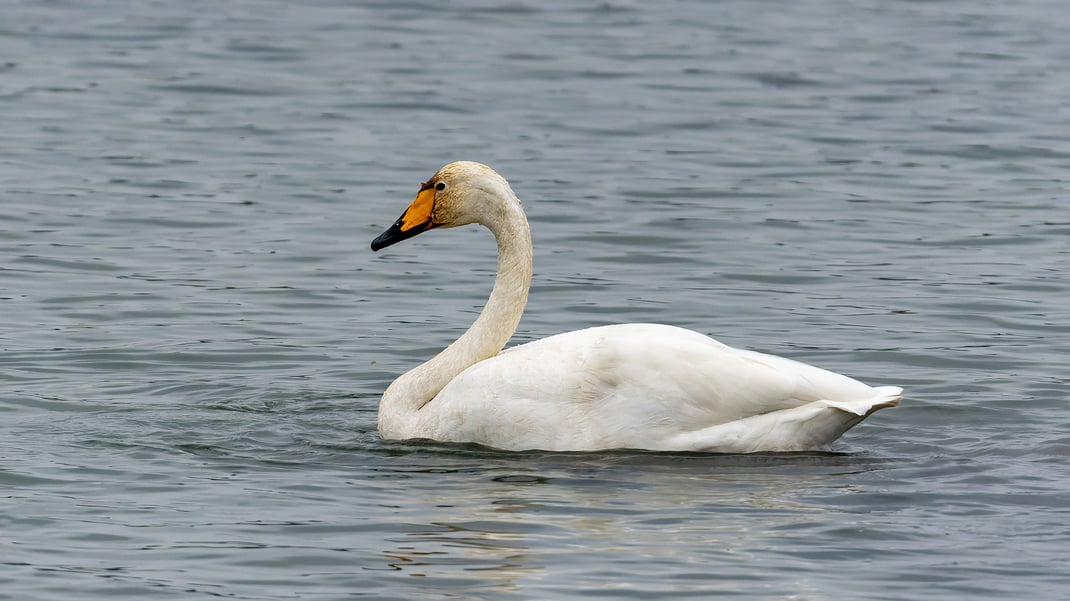 Die in Skandinavien und Sibirien brütenden Singschwäne überwintern in Deutschland vor allem im Norden. In Süddeutschlnd gibt es nur wenige Plätze, an denen die Vögel beobachtet werden können. Der Echinger Stausee ist einer davon. Im März verlassen uns die Schwäne wieder. (Björn Reese)